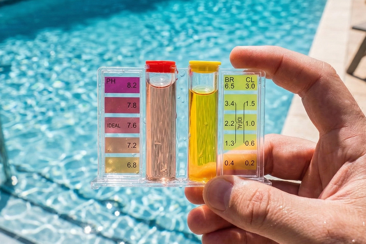 Test complet de votre eau en 15 minutes dans notre magasin de Gland. Mesure précise du pH, chlore libre/total, alcalinité et dureté calcique. Résultats immédiats avec plan d'action personnalisé. Service disponible toute l'année, particulièrement recommandé en début de saison et après hivernage.